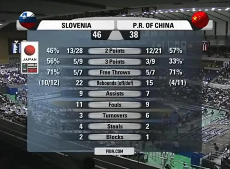 其实小组赛打到最后一场,双方的战术都不是秘密,斯洛文尼亚上来就疯狂绕前姚明,破坏中国队传球路线,姚明前半节接球非常困难,中国队一堆传球失误。